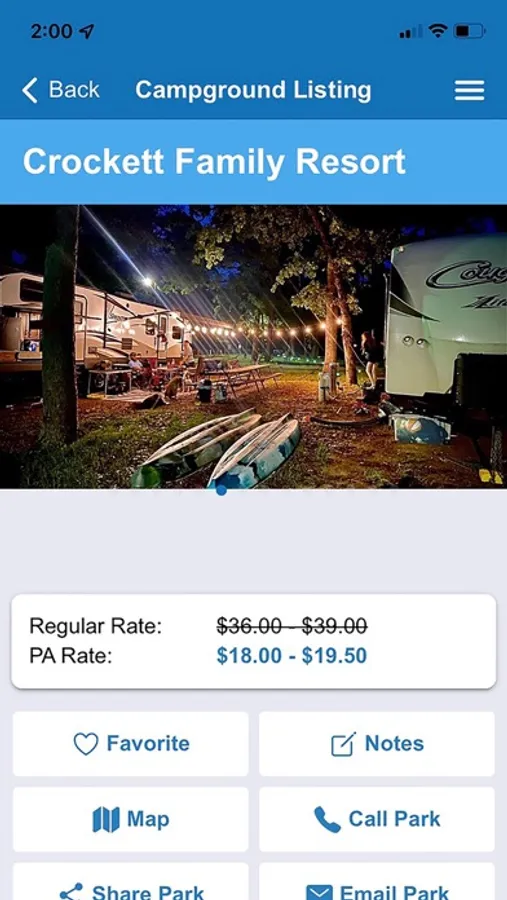 - Get Directions directly to a Campground using the Navigation app of your choice.