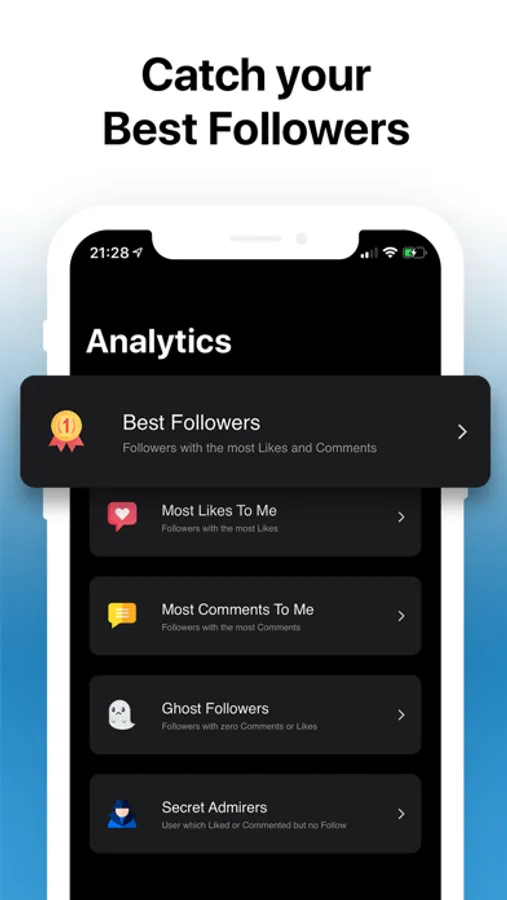 Ever wondered who unfollowed you on Instagram or who's your best follower? Analytics for Instagram is the most popular app for your Instagram community management.