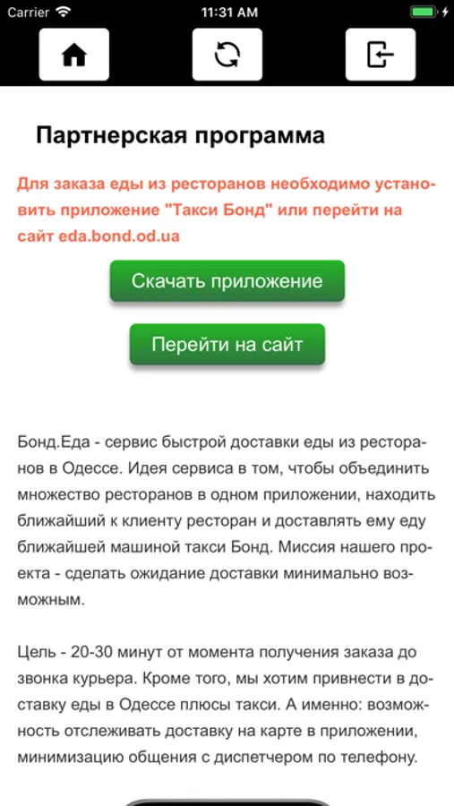 После заключения договора с такси Бонд на доставку еды, вы получаете логин и пароль для работы с этим приложением.