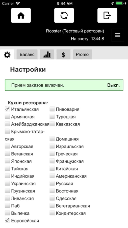 В приложении есть возможность получать, подтверждать заказы, смотреть за состоянием счета, редактировать меню, включать и выключать приём заказов.