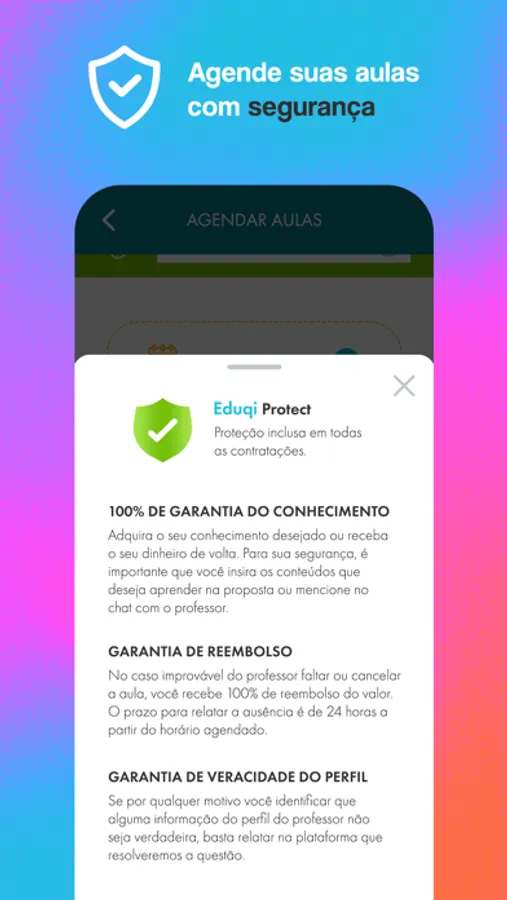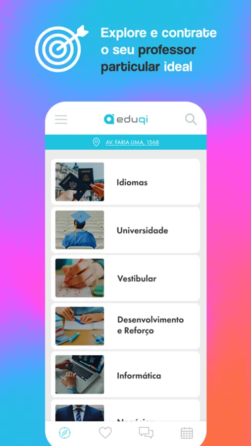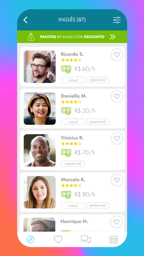 • Escolha seus professores, contrate com segurança e agende suas aulas.