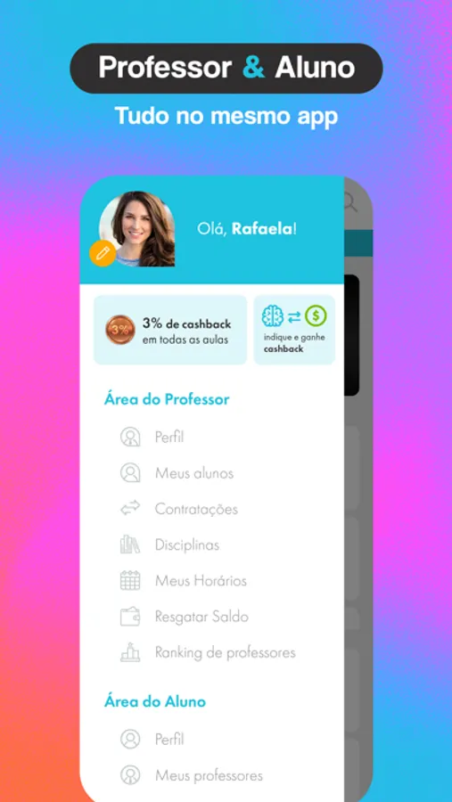 • Ganhe cashback em todas as aulas