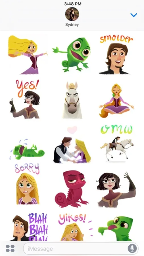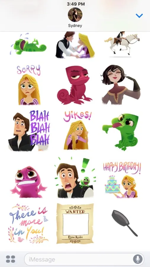 Get tangled up in big dreams and new adventures! Add magical hair to your messages with this new Tangled: The Series sticker pack that includes barefooted Rapunzel, smoldering Eugene, silly Pascal and more! Discover special accessories like Rapunzel's Frying Pan!