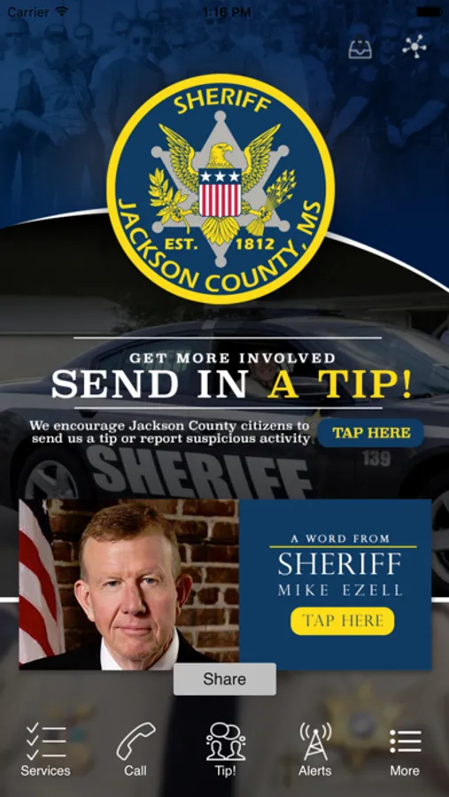 I am Sheriff Mike Ezell and on behalf of the men and women of the Jackson County Sheriff’s Office, I welcome you to our app.