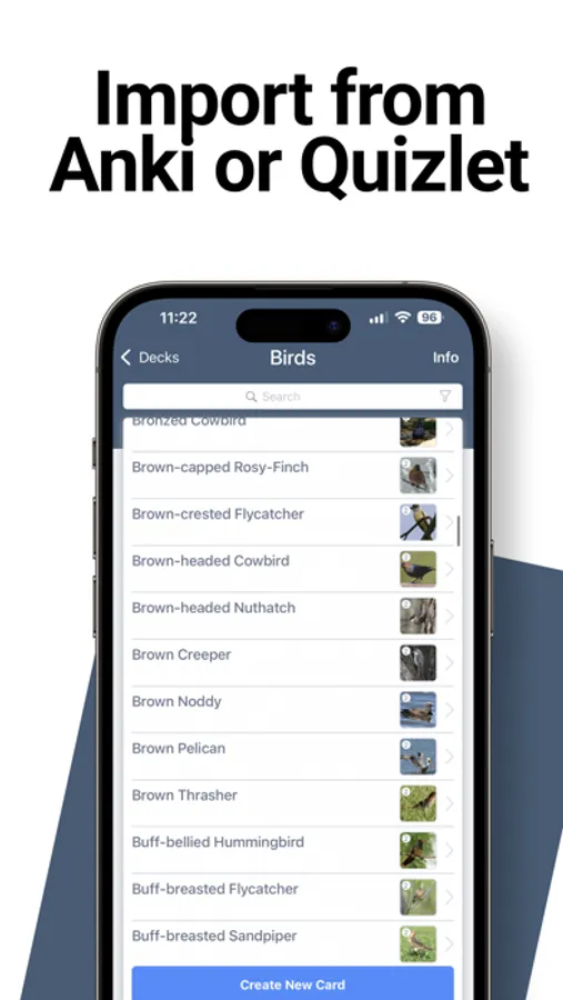 Import Anki and Quizlet decks with ease, retaining study history, card tags, and settings so you can pick up right where you left off. Enjoy features like smart keyboard switching for language learners and sign in with Apple for seamless access.