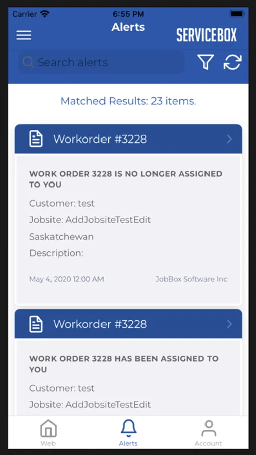 ServiceBox operates over the internet and helps to connect office users to the technicians in the field. The ServiceBox app is one way for your technicians and field staff to access the ServiceBox application.