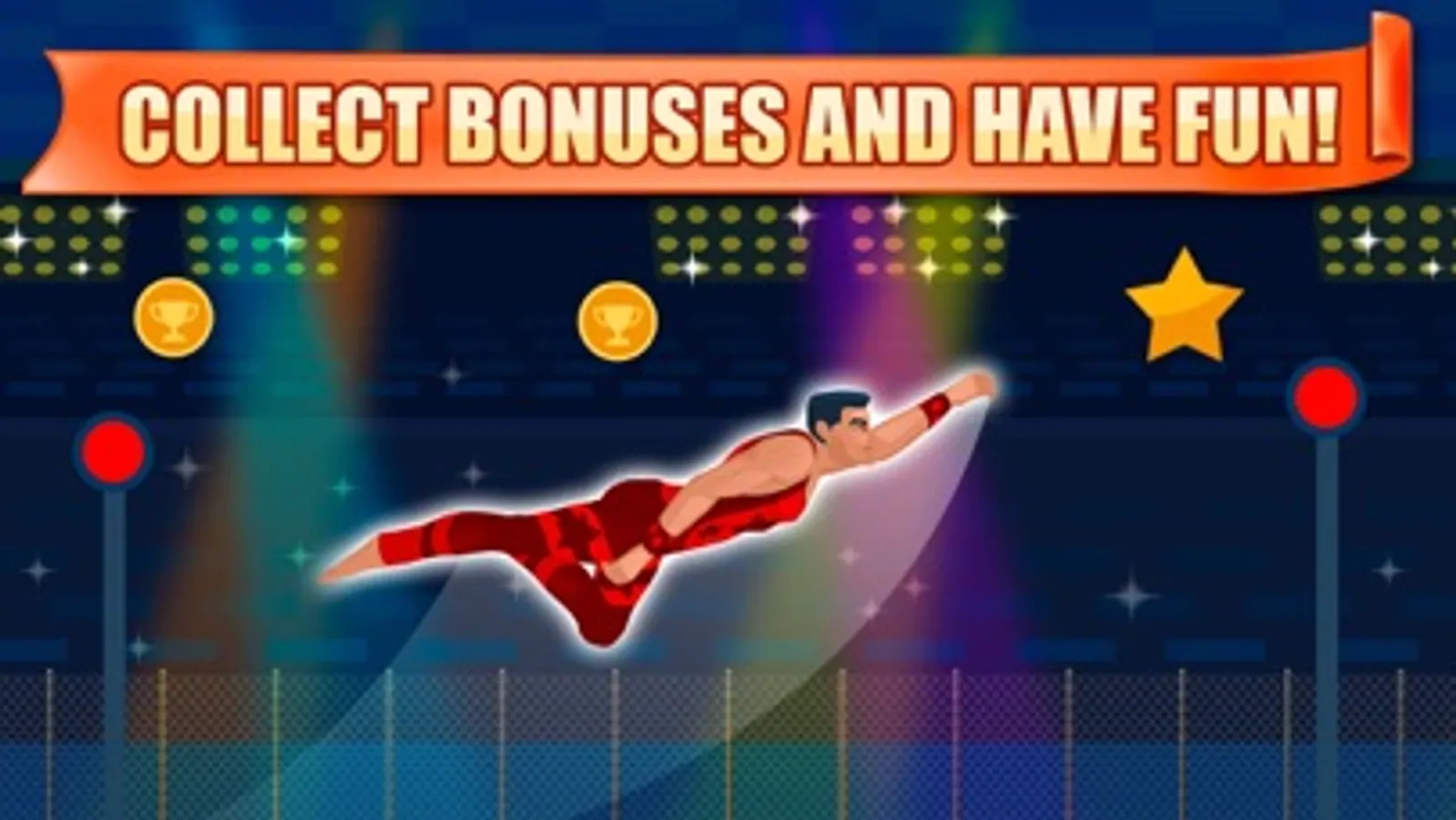 Become strong and dexterous athlete, jump over different interesting obstacles and pave your way to a glorious victory with World Gymnastics Athletics Championship! Join this fantastic tournament to master your sports skills up to a perfect level and have fun!