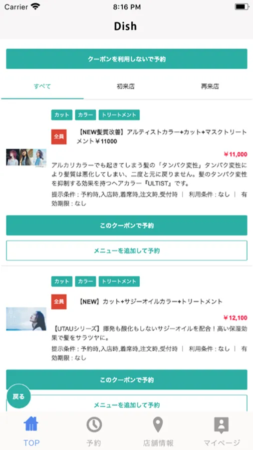 お得なクーポンが配信されます。ネット予約時にクーポン利用での予約も可能なので来店時もスムーズに施術頂けます。