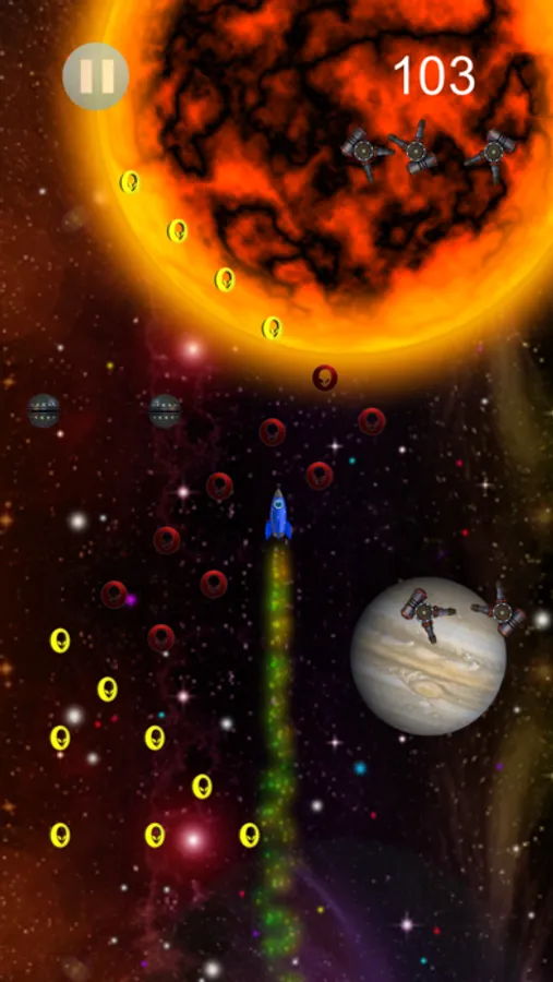 Just rotate the the screen so the racet escapes the enemies.