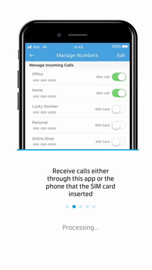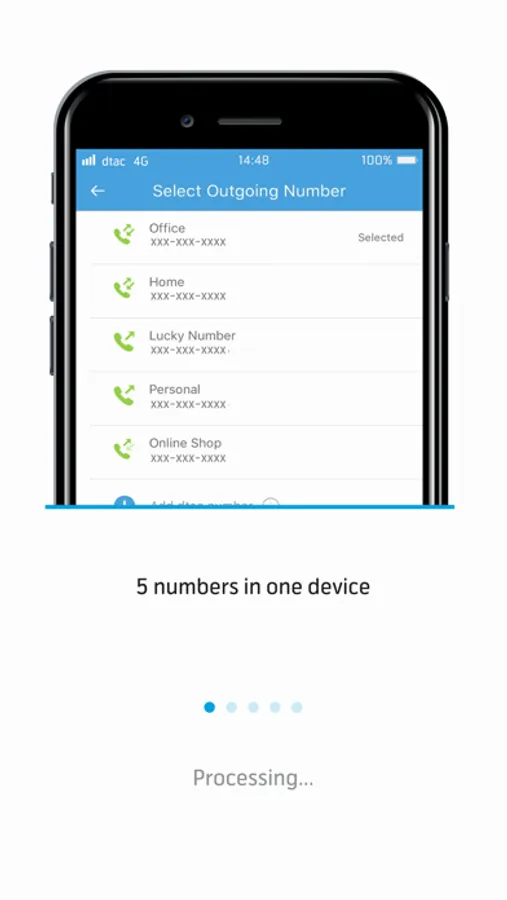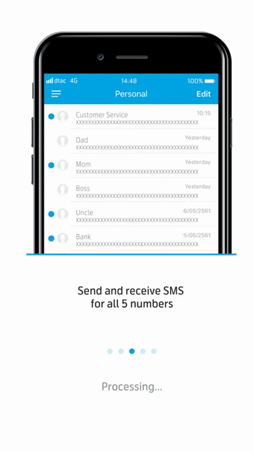 dtac call is an application for dtac customers who own more than one mobile phone number to manage incoming and outgoing calls up to 5 mobile phone numbers, including sending-receiving text messages and enjoying all special privileges from dtac reward. You can simply connect dtac call via any internet connection (both SIM card and WiFi) in both domestic and international. (Incoming and outgoing calls through dtac call application via dtac SIM card will not be charged for Internet usage.)