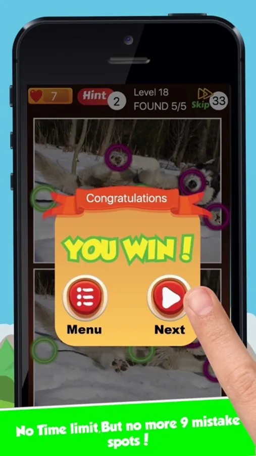 5. when you are stuck! Take Hint for increase the number of difference and Skip to skip level.