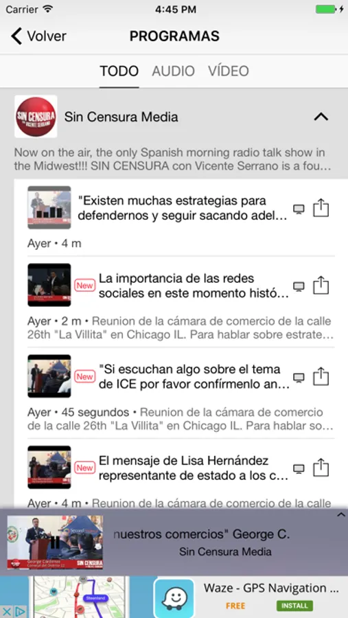 La aplicacion de Sin Censura Media ofrece la posibilidad de escuchar todos los programas disponibles en nuestra emisora. Mantente en contacto con nosotros - hay la posibilidad de enviarnos mensajes audio, video o de texto con la característica Radio Reporter. Echa un vistazo los notícias disponibles en nuestra sección de la app 'News'/ 'Noticias'. No te olvides que nuestra app está disponible en Inglés y Español.