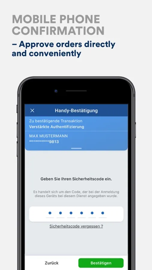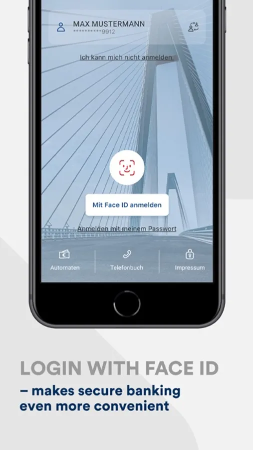 - Login via the safety access of your mobile device, e.g. Touch ID/Face ID (if available)