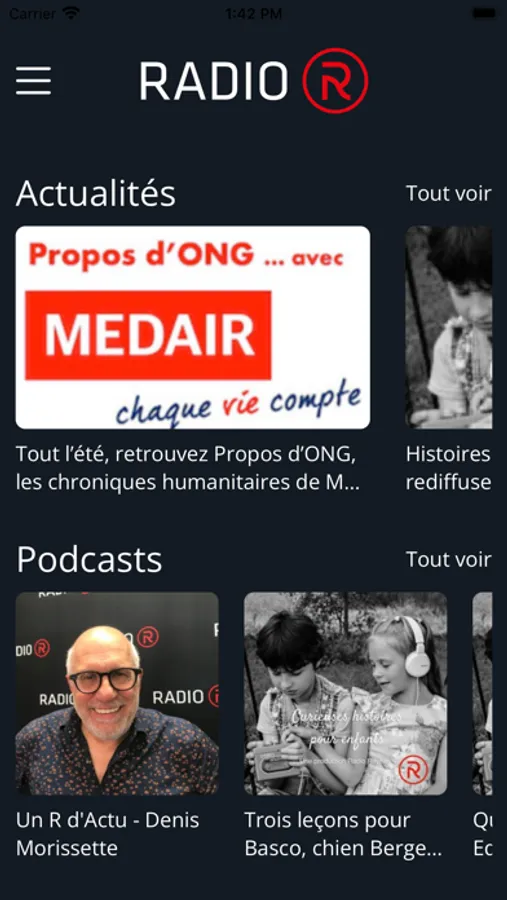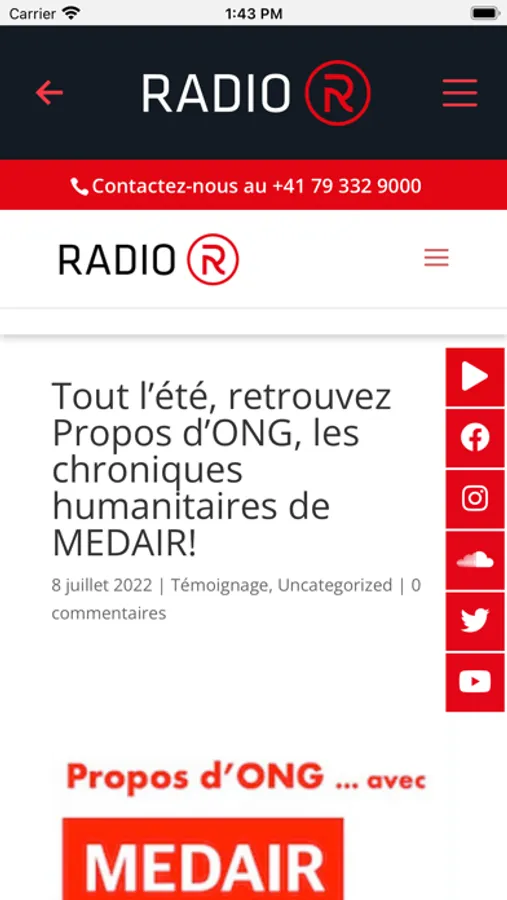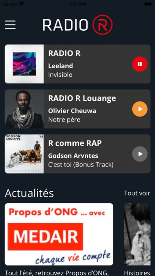 Radio R diffuse non-stop de la musique contemporaine, les flashs info de la RTS (RTS INFO) et des programmes courts reliant la foi chrétienne avec les préoccupations de notre société.