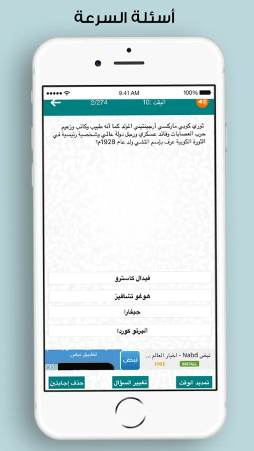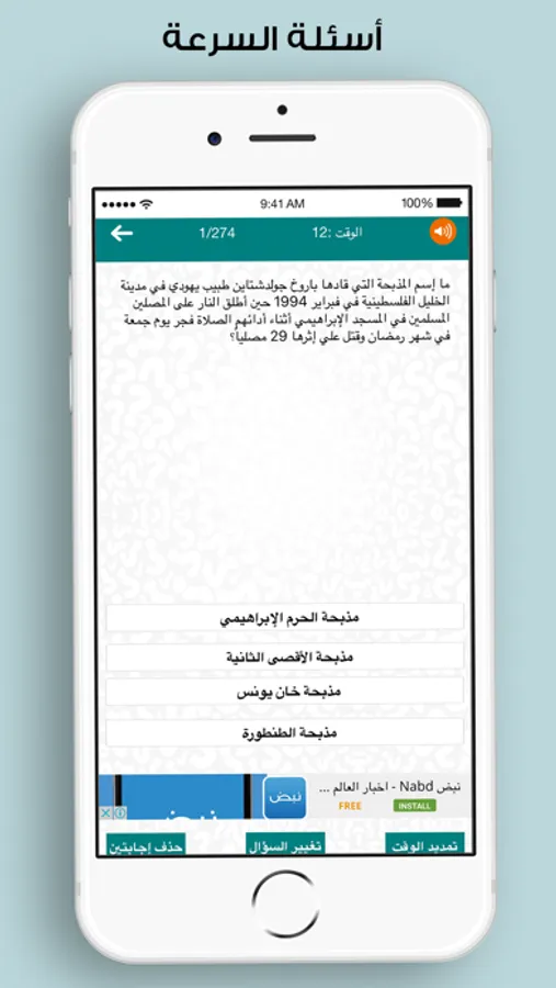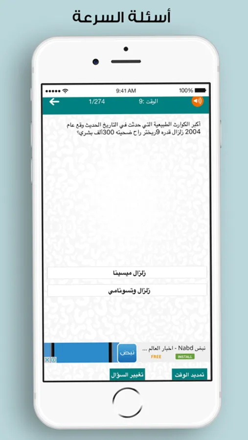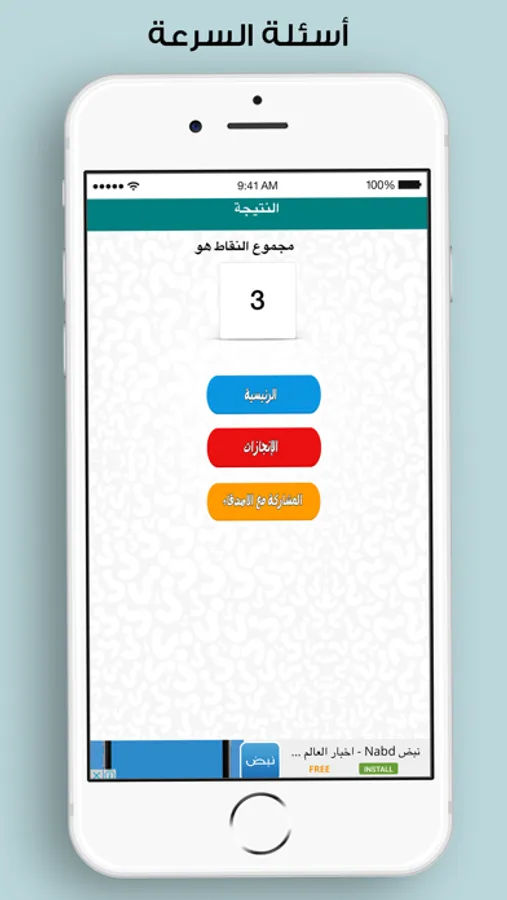 - سجل بإنجازاتك وتقدمك في لعبة الاسئلة مع إمكانيه مشاركة النتائج مع أصدقائك