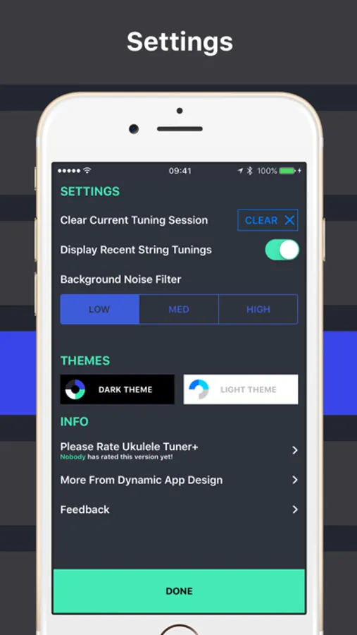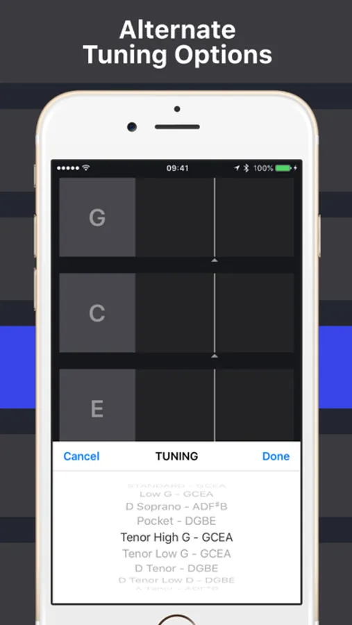 Ukulele Tuner+ is a simpler way to tune your ukulele. It automatically hears which string you are tuning and expands that area for maximum visibility. When you are done tuning that string, it's last tuned position is saved on screen so you can see your tuning progress. Tap any note name to play a reference pitch to tune by ear.