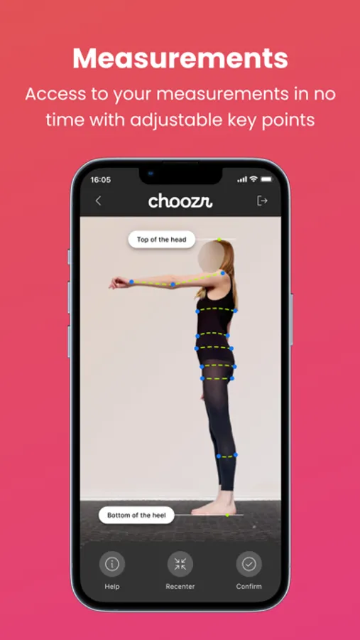 Choozr is the easiest way to get accurate body measurements from the comfort of your home. It’s fast, accurate, safe, and easy to use.