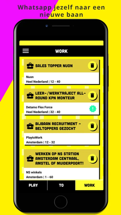 Door de games te spelen op de app van PlaytoWork vergroot je de kans op het vinden van een echte baan die past bij jou!