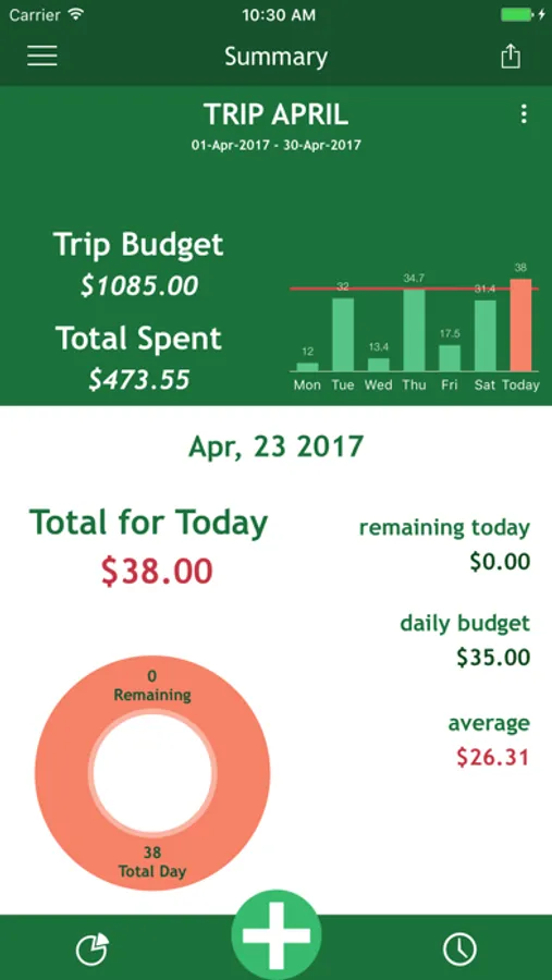 Keep your trip budget under control! Check your daily and weekly expenses. Analyze charts and trends by category or week. Export and share your trip expenses to spreadsheets, email and much more. Take pictures of your receipts or expense details.