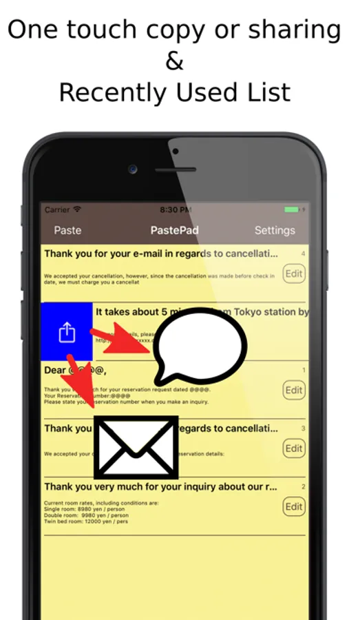 Paste from other applications is also one touch and recently used notes are automatically displayed on top so you can quickly access frequently used notes.