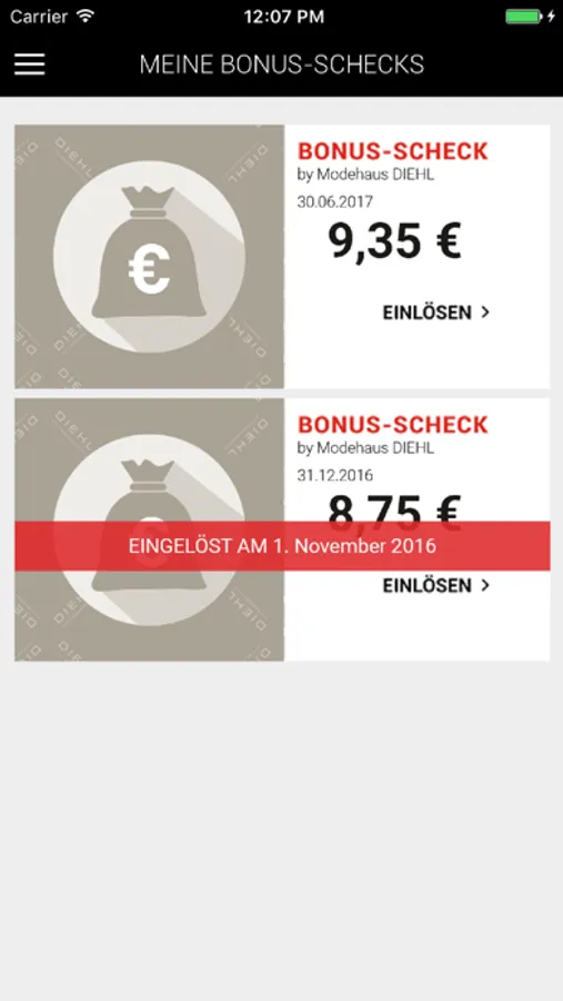 Meine Kundenkarte anzeigen: Mit dieser Funktion sammeln Sie bei uns Ihren Umsatz-Bonus für den nächsten Bonus-Scheck. Ihre Karte wird überflüssig.