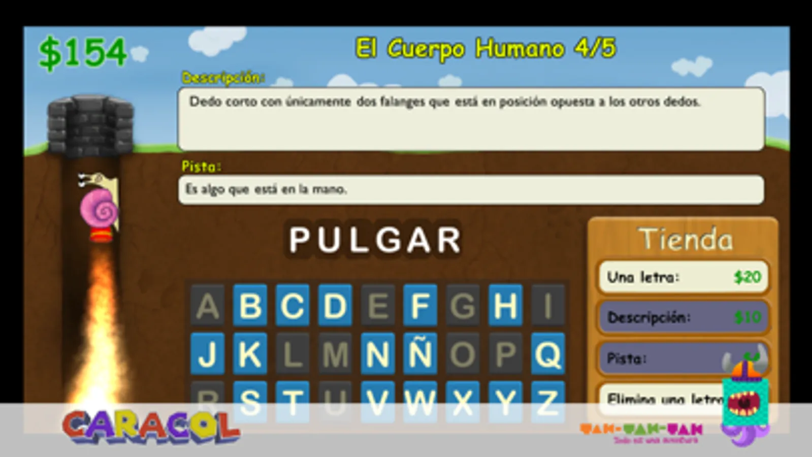 En este videojuego educativo de Español se busca que el niño conozca el significado de distintas palabras y las convenciones ortográficas de su escritura.