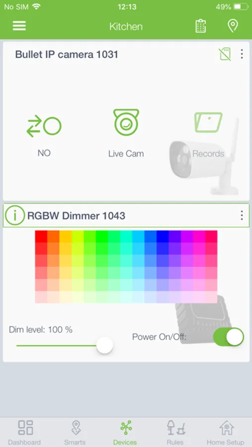 - Real time update of devices (light status, temperature status, etc.)