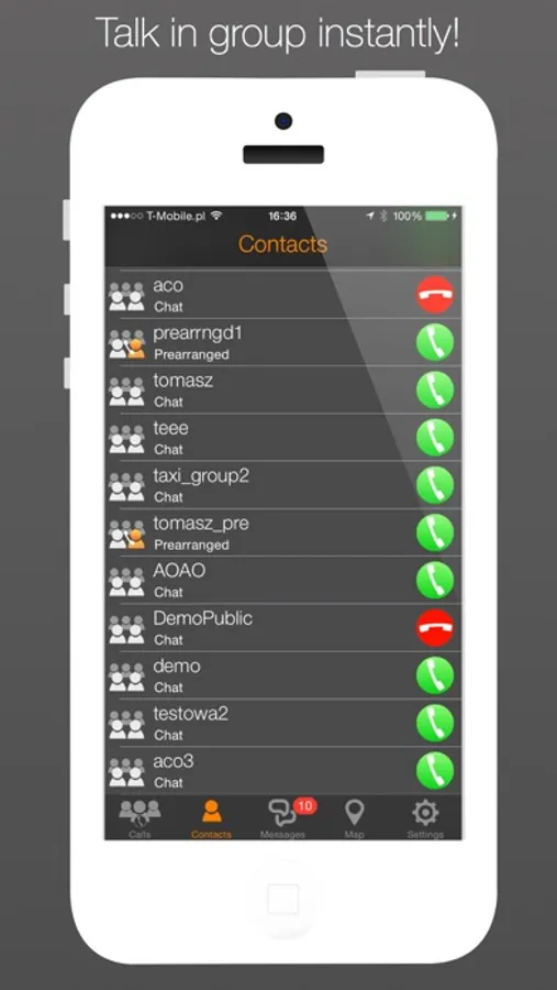 - Comunicación de voz en grupo con varios usuarios - diferentes tipos de grupos disponibles