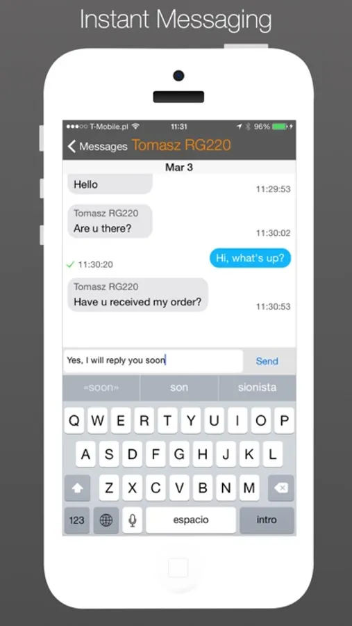 - Mensajes instantáneos - 1 a 1 o Mensajes de grupo - simplemente envíe un mensaje a su grupo y todos los miembros conectados lo recibirán