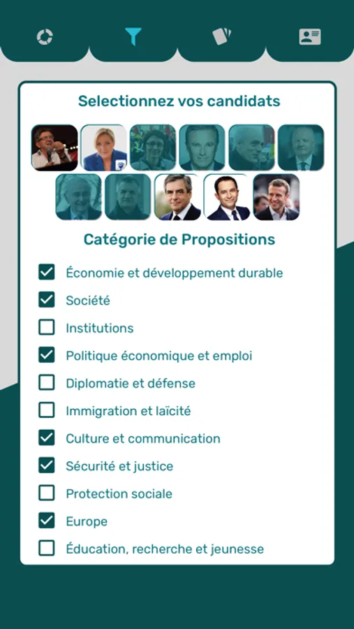Choisissez votre candidat en fonction de ses idées et non de sa personnalité d'une façon simple et ludique.