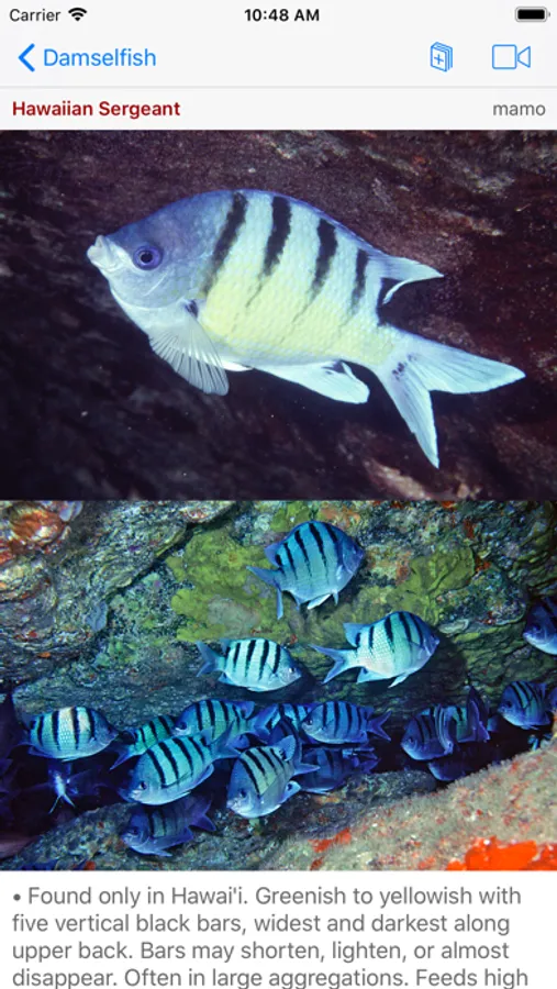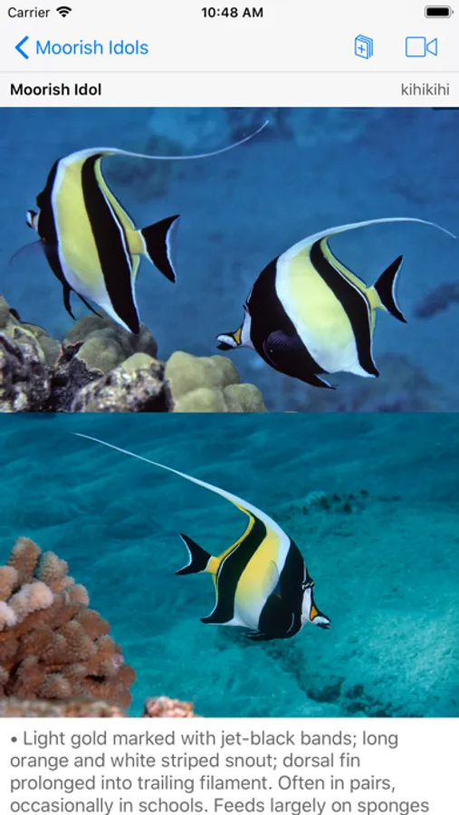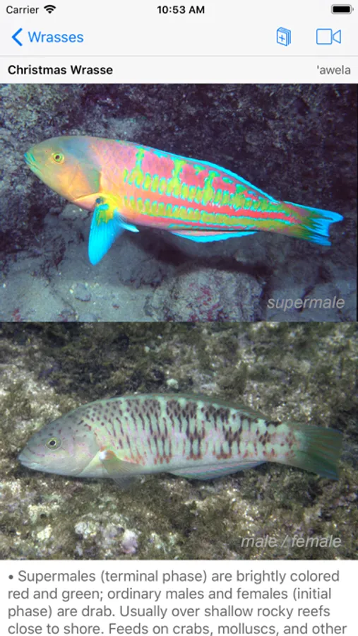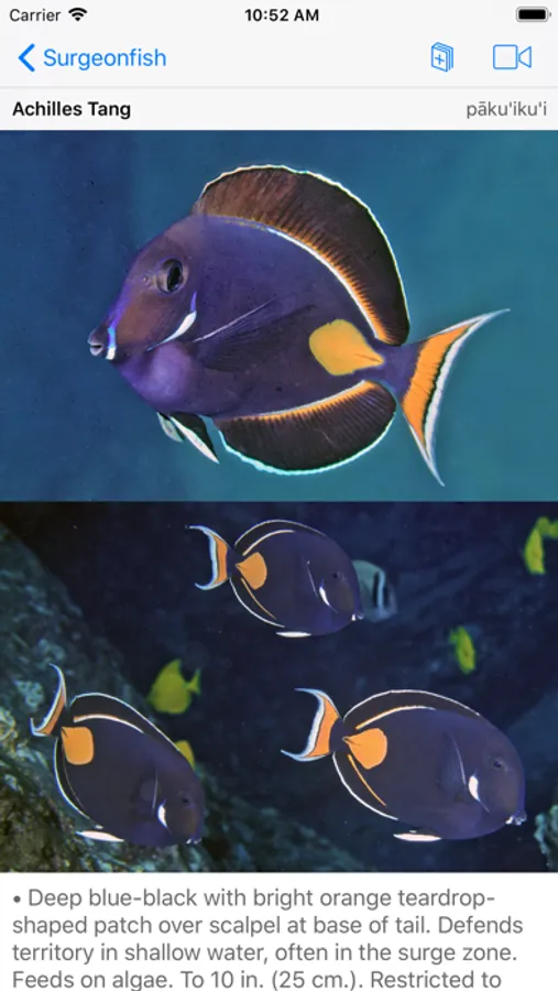 ** Only half of Hawaii's 400+ shore fish live at snorkeling depths. For easier ID, faster download and smaller footprint, this app omits deeper-dwelling fish. For a more complete set of fish, see my app Scuba Fish Hawaii.