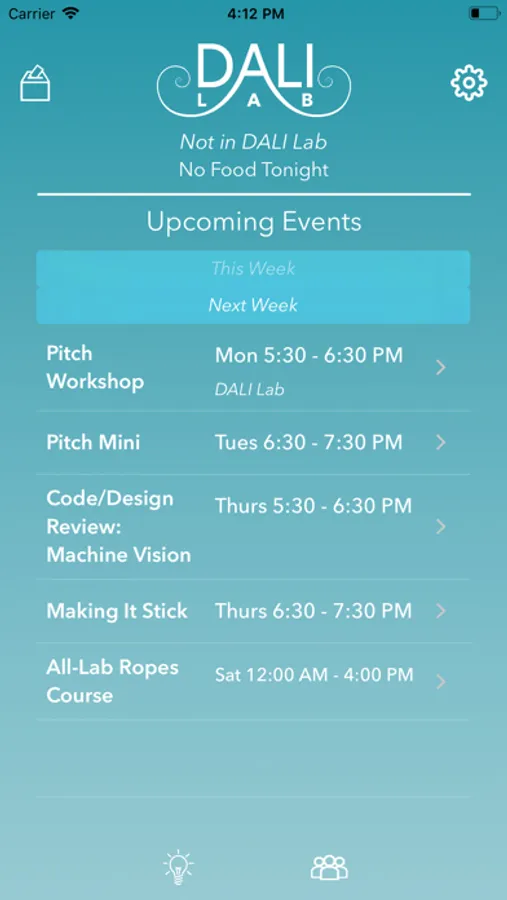 For members it provides an interface for accessing data like TA office hours, or even upcoming events. More importantly with this app installed on your phone (and with location services on) you will be automatically checked in to whatever DALI Lab event you attend. Data is also collected on entering and exiting the lab for analytics and statistics that the Core and Staff can use to improve your experience. Plus you can allow the app to include you in the list of people in the lab when you're there.