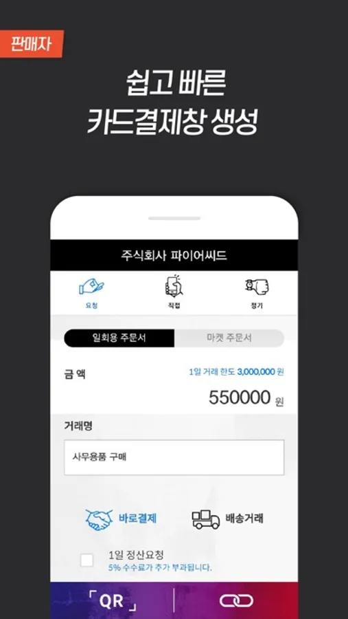 · 바쁜 현장에서 판매자가 구매자의 결제정보를 받아 신속하게 결제