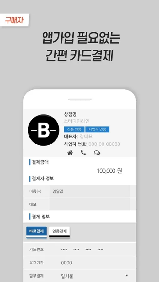*구매자는 앱설치가입 없이도 결제할 수 있습니다.