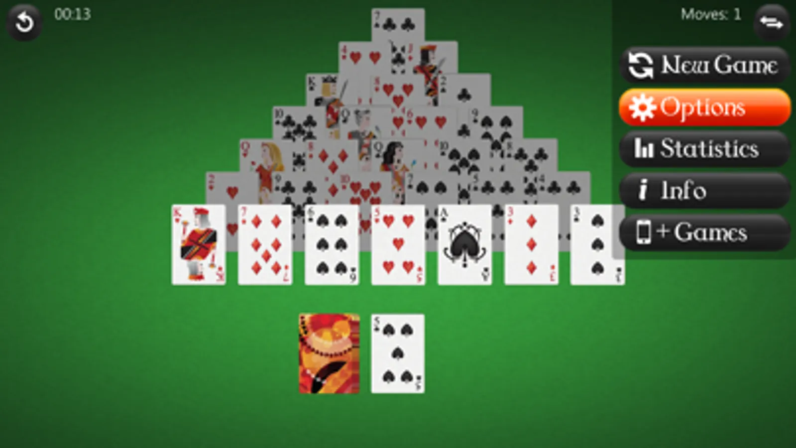 A game is considered won if all the cards from the Pyramid are removed. Not all games are winnable. The game will notify you if there's no chance of winning the game anymore.