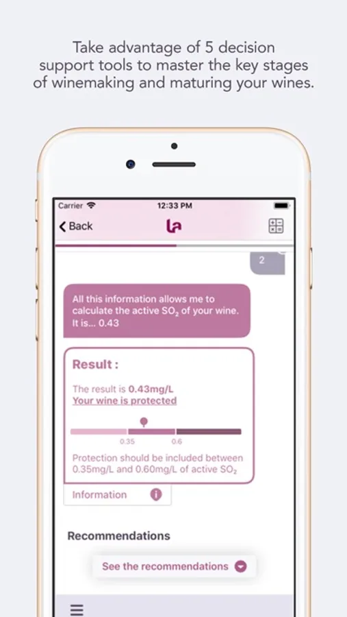 True partner of winemakers and assistant winemakers, Oenosolutions is an innovative app developed in order to make day-to-day technicians’ life easier in their decision-making. The app is composed of winemaking calculators such as acidity management, sugar addition, management of winemaking inputs… Its will help winemakers implementing appropriate solutions, according to the wine characteristics and the desired goal.