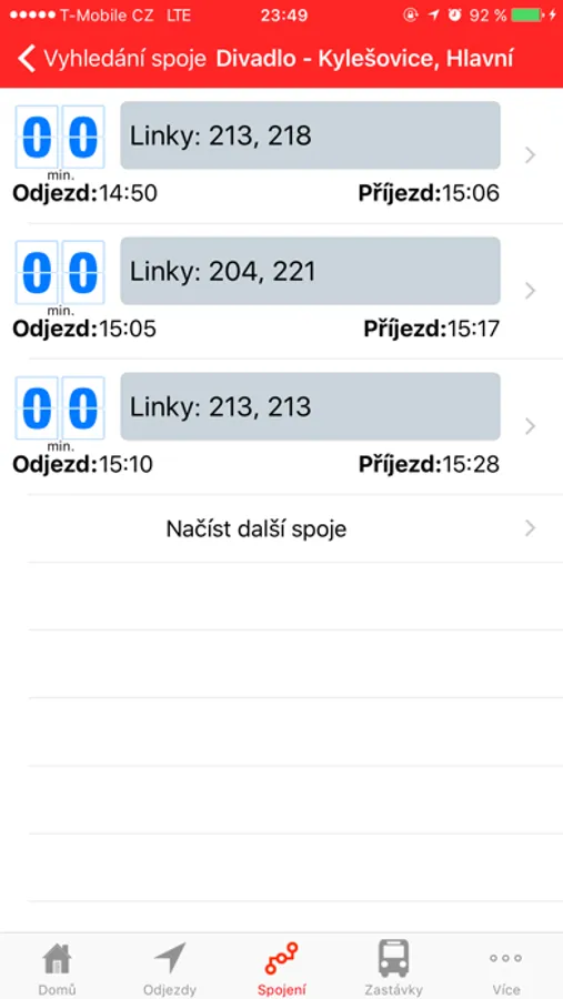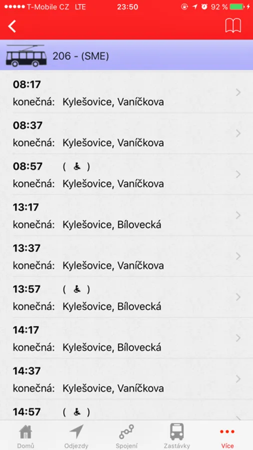 vyhledat jízdní řád požadované linky. Prakticky všechny informace jsou i bez nutnosti připojení k internetu.
