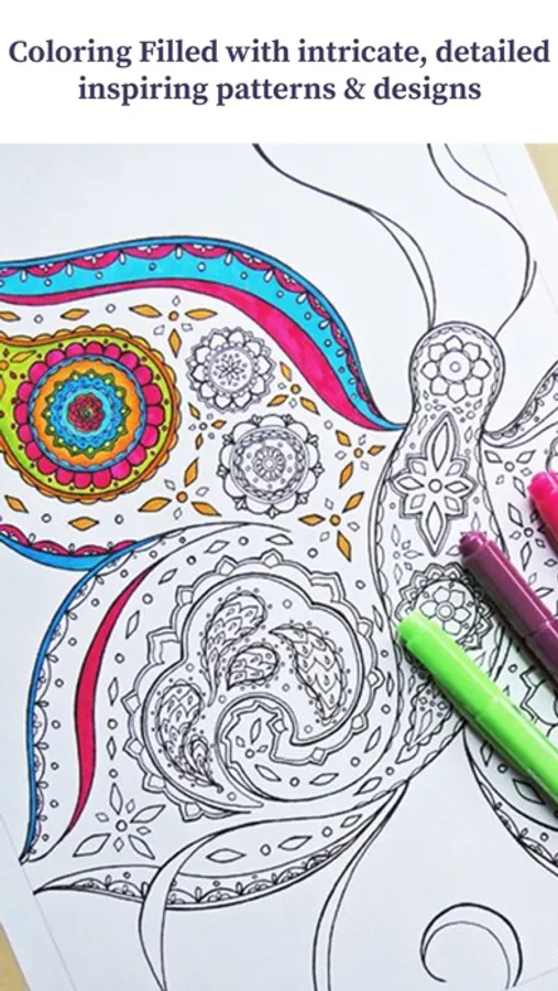 - Color beautiful florals, patterns, mandalas, famous paisleys, and more