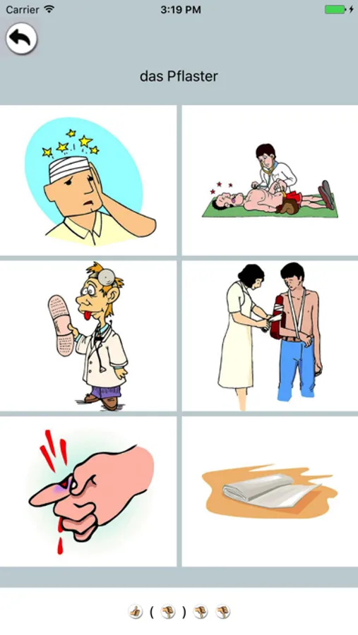 If you know the word, "thumb up" the card by pressing on the hand. Otherwise the card will stay in the "thumb down" category.