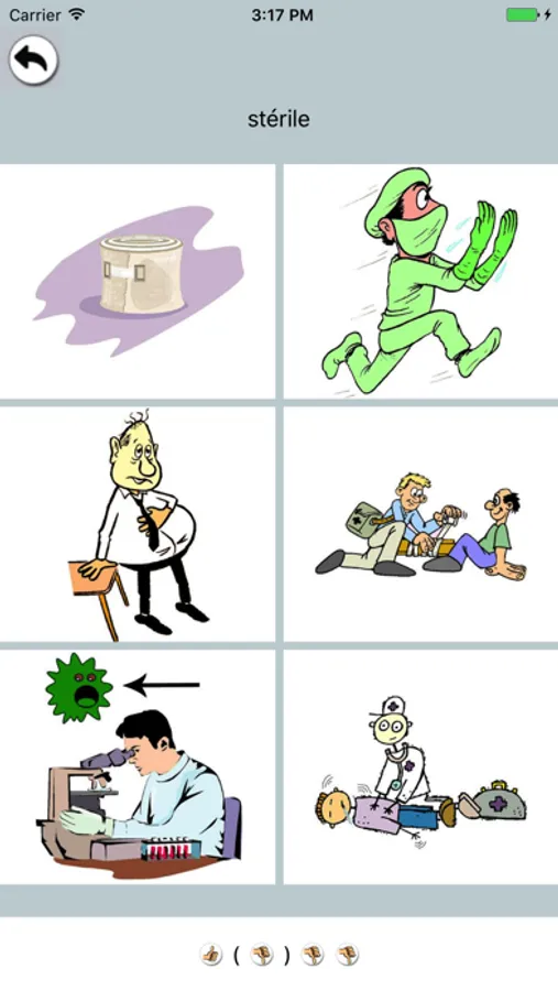 If you know the word, "thumb up" the card by pressing on the hand. Otherwise the card will stay in the "thumb down" category.