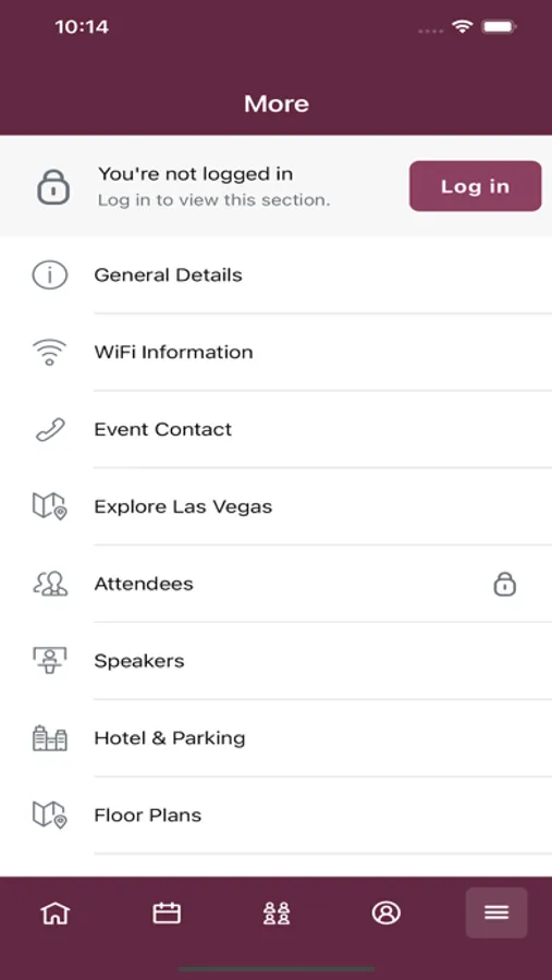 • Agenda - view the full agenda and related information (session time, room name, speaker info, etc).