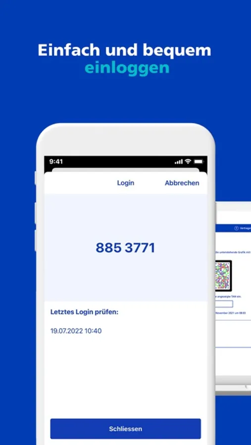 - Hohe Sicherheit aufgrund der Aufteilung auf zwei Kanäle (Smartphone und eBanking)
