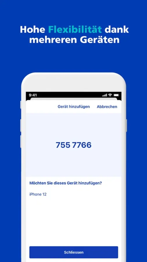Danach wird Ihnen ein Code angezeigt, den Sie zusätzlich zu Ihrem Passwort für das Login oder Transaktionen benötigen.