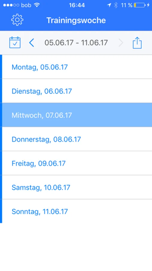 In der übersichtlichen Wochenansicht können neue Trainingseinheiten hinzugefügt und die Trainingsdauer festgehalten werden.
