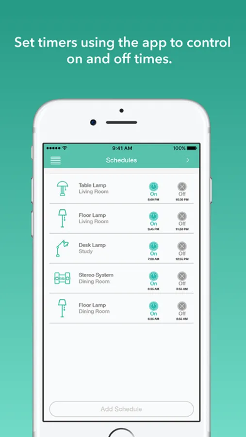 • The timer feature allows you to turn your electronics on or off from anywhere.