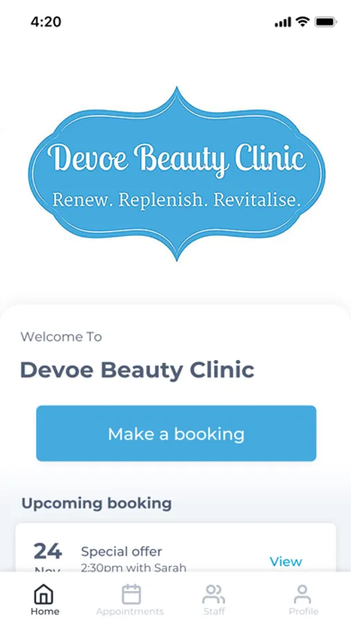 The Devoe Beauty Clinic app makes booking your appointments and managing your loyalty points even easier. You're just a few taps away from feeling good and looking great!