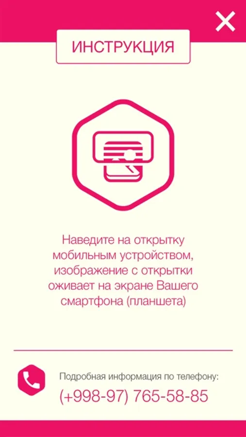 Живая открытка с дополненной реальностью с помощью которого изображение с открытки оживает на экране Вашего мобильного устройства. Наведите смартфон (планшет)на изображение открытки камеру мобильного устройства, Вы увидите 3D анимацию, которая разворачивается на открытке.