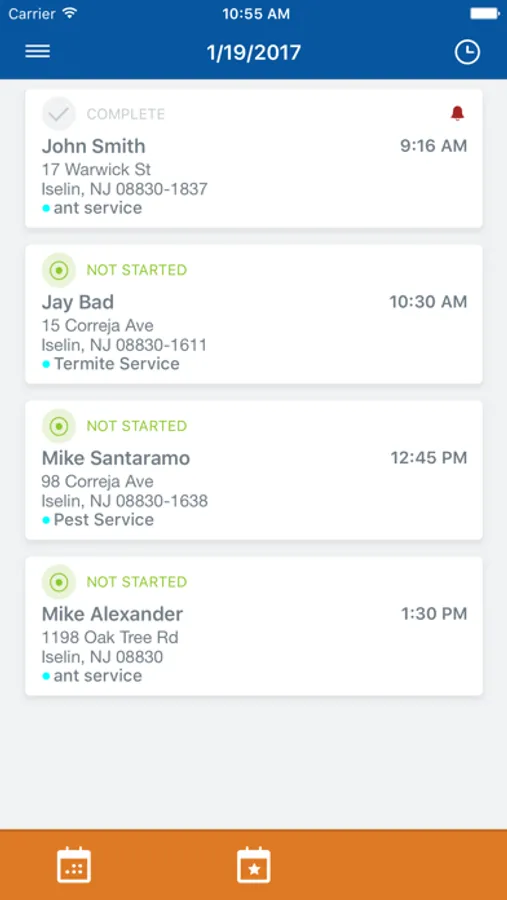 View appointment list and calendar of jobs