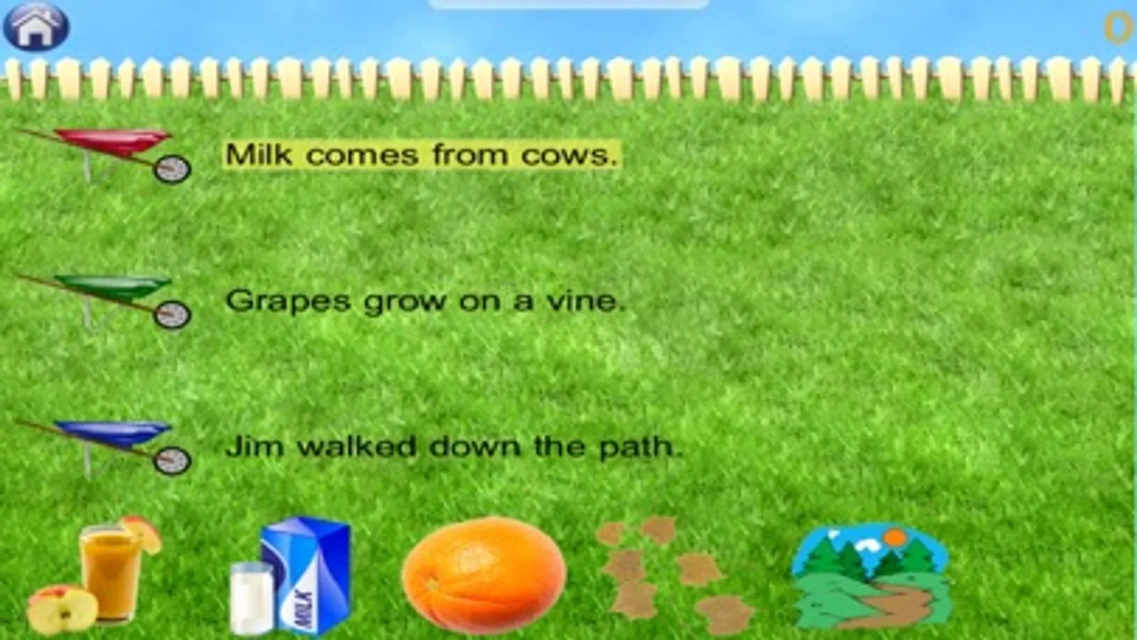 The games involve choosing the correct word to complete each sentence. They automatically increment to the next sentence group after the student has mastered the current group twice. The games automatically adjust to allow children to learn at a level of difficulty personalized for them. As they succeed, new challenges at harder levels will be presented. While a child's difficulty level is automatically adjusted based on his or her performance, it can be easily modified by parents or teachers when necessary. Distraction stimuli can also be added to reinforce increased focus and the ability to stay on task.