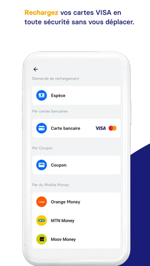 Faire des transferts vers toutes les cartes Visa, compte bancaires et Mobile Money quelque soit votre banque